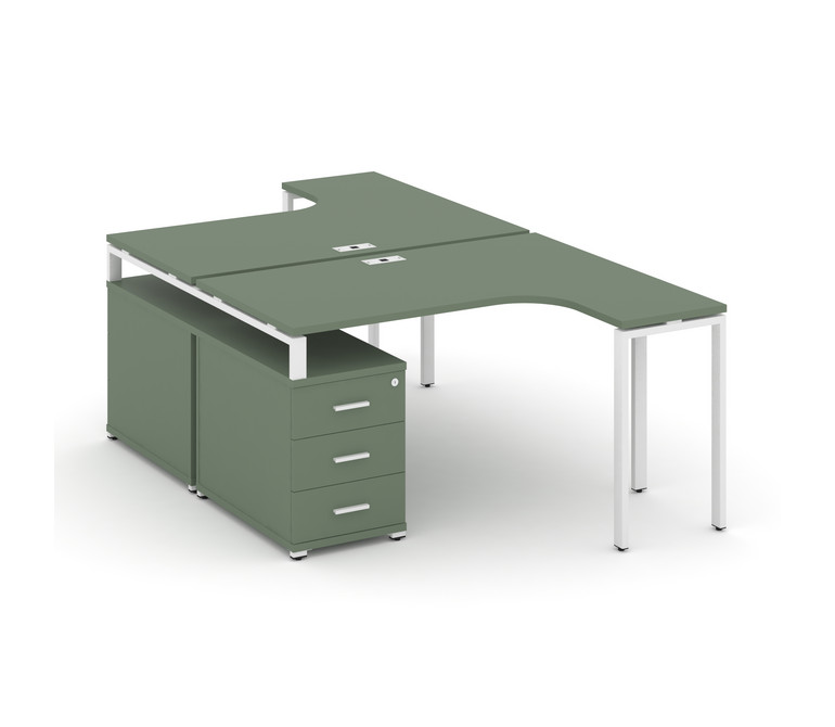 Concept Рабочая станция с двойной опорной тумбой CN.DSA-302 W Кобо/Металл Белый 1580/1946*2400*750