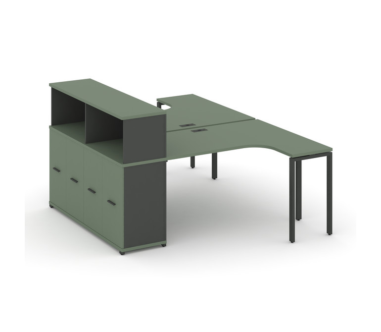 Concept Рабочая станция с опорным распаш. шкафом с надставкой низ. CN.DSA-214 A Кобо/Антрацит/Металл