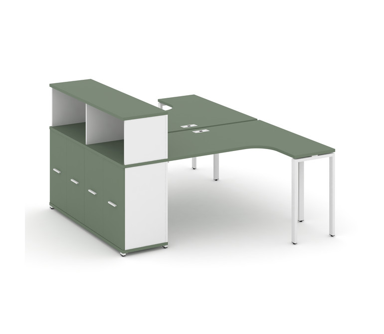Concept Рабочая станция с опорным распаш. шкафом с надставкой низ. CN.DSA-214 W Кобо/Белый Бриллиант