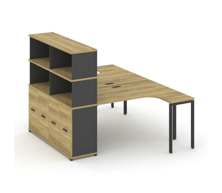 Concept Рабочая станция с опорным распаш. шкафом с надставкой выс. CN.DSA-216 A Дуб Винченцо/Антраци