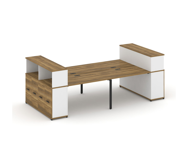 Concept Рабочая станция с опорными распаш. шкафами с надставкой низ. CN.DRS-270 B Сандал Янтарный/Бе