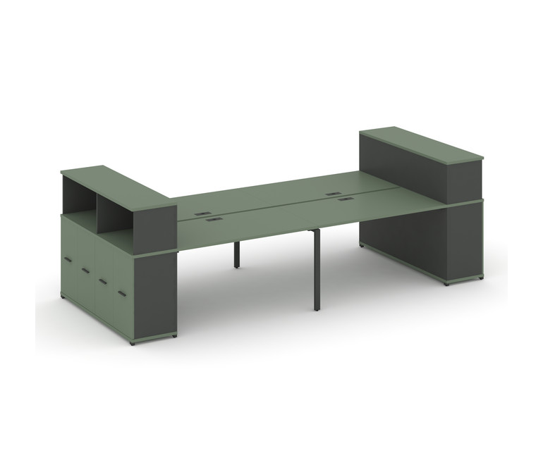 Concept Рабочая станция с опорными распаш. шкафами с надставкой низ. CN.DRS-271 A Кобо/Антрацит/Мета