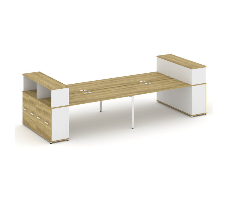 Concept Рабочая станция с опорными распаш. шкафами с надставкой низ. CN.DRS-272 W Дуб Винченцо/Белый