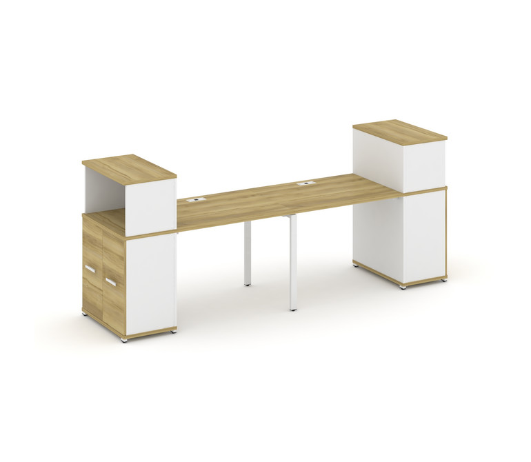 Concept Рабочая станция с опорными распаш. шкафами с надставкой низ. CN.ORS-225 W Дуб Винченцо/Белый