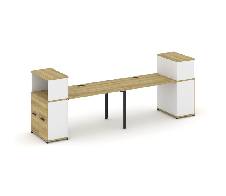 Concept Рабочая станция с опорными распаш. шкафами с надставкой низ. CN.ORS-226 B Дуб Винченцо/Белый
