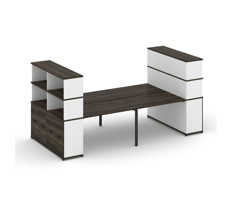 Concept Рабочая станция с опорными распаш. шкафами с надставкой выс. CN.DRS-274 B Дуб Мали/Белый Бри
