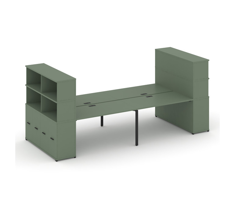 Concept Рабочая станция с опорными распаш. шкафами с надставкой выс. CN.DRS-274 B Кобо/Металл Черный