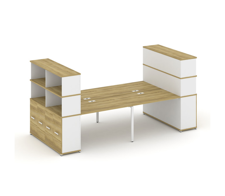 Concept Рабочая станция с опорными распаш. шкафами с надставкой выс. CN.DRS-274 W Дуб Винченцо/Белый