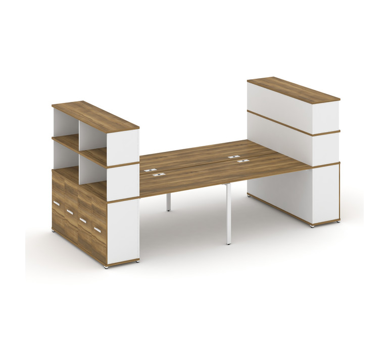 Concept Рабочая станция с опорными распаш. шкафами с надставкой выс. CN.DRS-274 W Сандал Янтарный/Бе