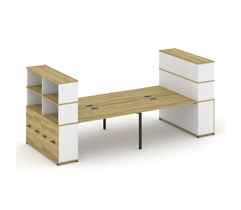 Concept Рабочая станция с опорными распаш. шкафами с надставкой выс. CN.DRS-275 B Дуб Винченцо/Белый