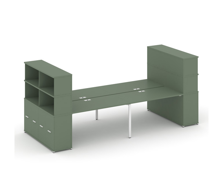 Concept Рабочая станция с опорными распаш. шкафами с надставкой выс. CN.DRS-276 W Кобо/Металл Белый