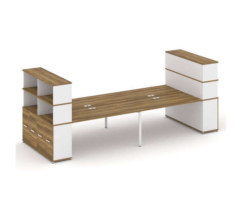 Concept Рабочая станция с опорными распаш. шкафами с надставкой выс. CN.DRS-276 W Сандал Янтарный/Бе