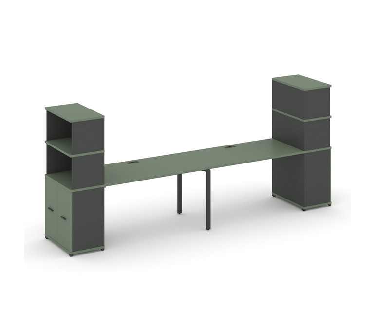 Concept Рабочая станция с опорными распаш. шкафами с надставкой выс. CN.ORS-229 A Кобо/Антрацит/Мета