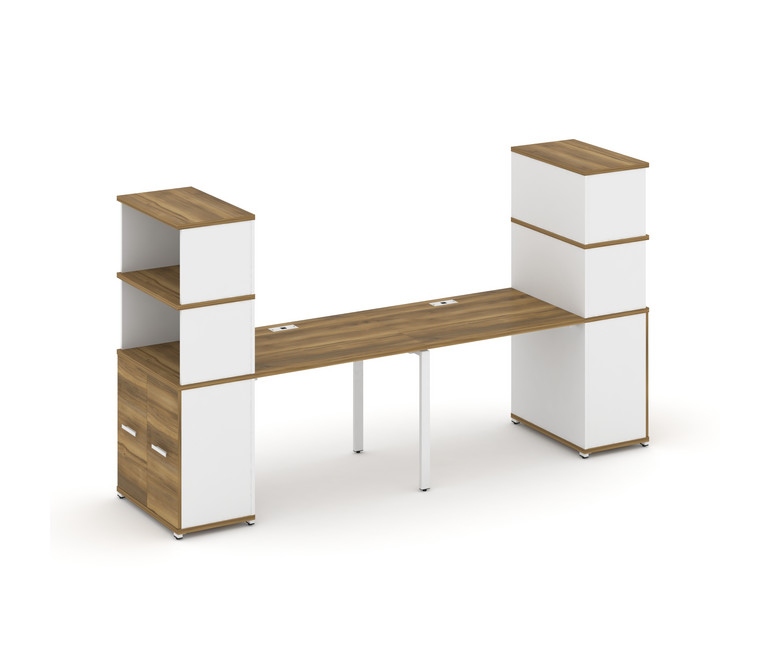 Concept Рабочая станция с опорными распаш. шкафами с надставкой выс. CN.ORS-229 W Сандал Янтарный/Бе