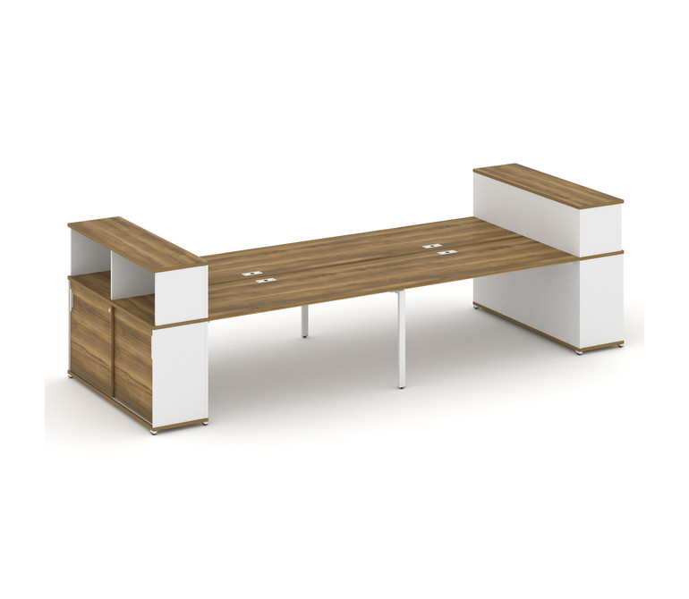 Concept Рабочая станция с опорными шкафами-купе с надставкой низ. CN.DRS-284 W Сандал Янтарный/Белый