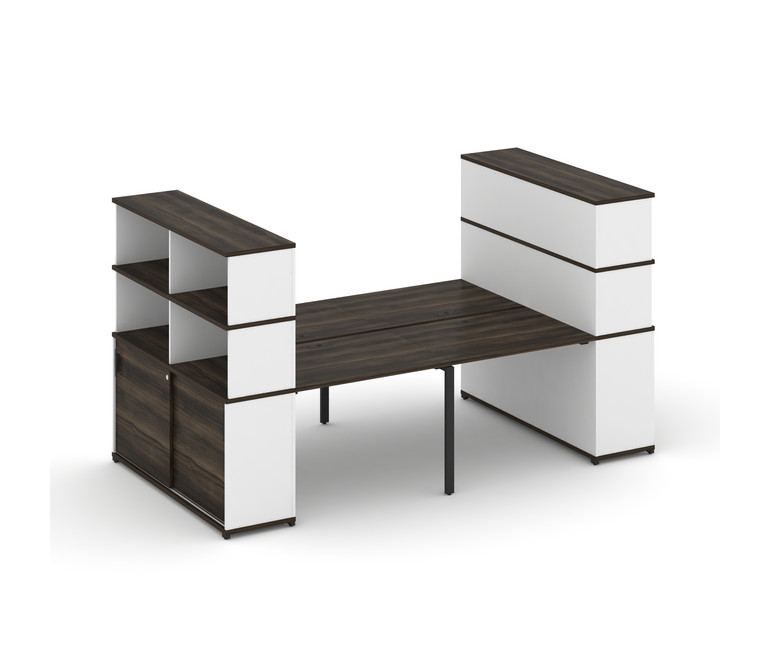 Concept Рабочая станция с опорными шкафами-купе с надставкой выс. CN.DRS-285 B Дуб Мали/Белый Брилли