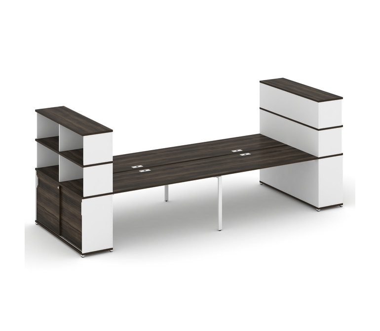 Concept Рабочая станция с опорными шкафами-купе с надставкой выс. CN.DRS-288 W Дуб Мали/Белый Брилли