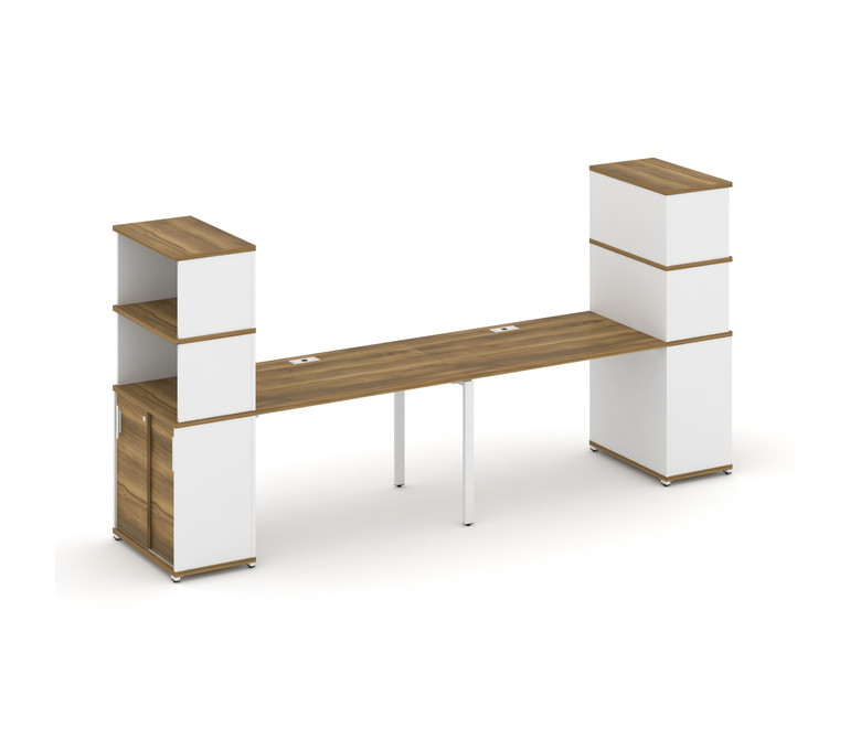 Concept Рабочая станция с опорными шкафом-купе с надставкой выс. CN.ORS-242 W Сандал Янтарный/Белый