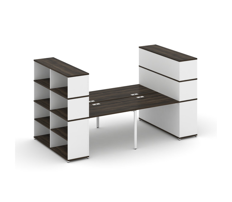 Concept Рабочая станция с опорными стеллажами с надставкой выс. CN.DRS-257 Дуб Мали/Белый Бриллиант/