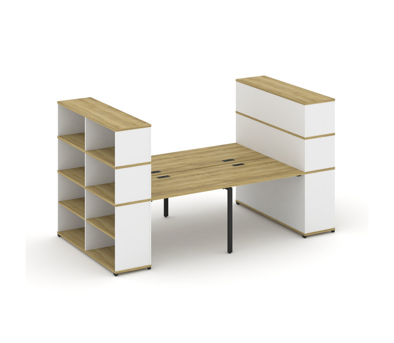 Concept Рабочая станция с опорными стеллажами с надставкой выс. CN.DRS-257 Дуб Винченцо/Белый Брилли