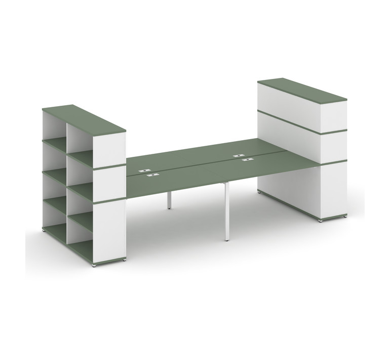 Concept Рабочая станция с опорными стеллажами с надставкой выс. CN.DRS-259 Кобо/Белый Бриллиант/Мета