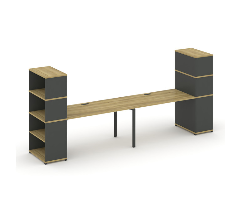 Concept Рабочая станция с опорными стеллажами с надставкой выс. CN.ORS-213 Дуб Винченцо/Антрацит/Мет