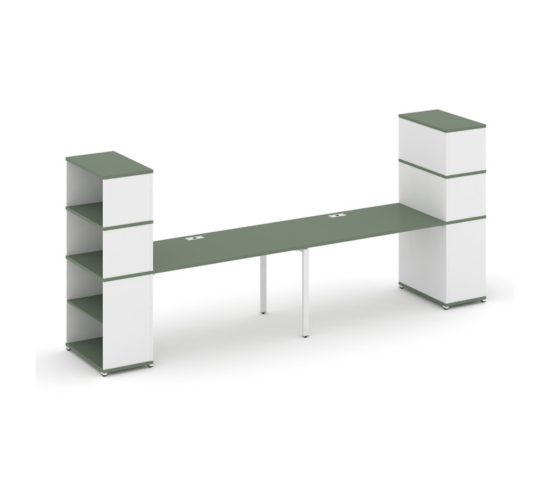 Concept Рабочая станция с опорными стеллажами с надставкой выс. CN.ORS-213 Кобо/Белый Бриллиант/Мета