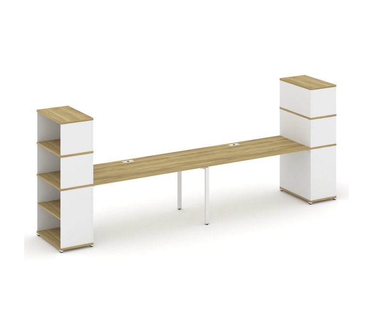 Concept Рабочая станция с опорными стеллажами с надставкой выс. CN.ORS-216 Дуб Винченцо/Белый Брилли