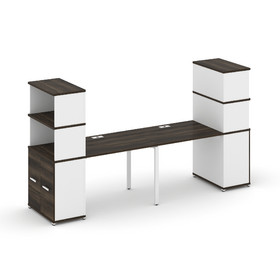 Concept Рабочая станция с опорными стеллажами с надставкой выс. CN.ORS-216 Кобо/Белый Бриллиант/Мета
