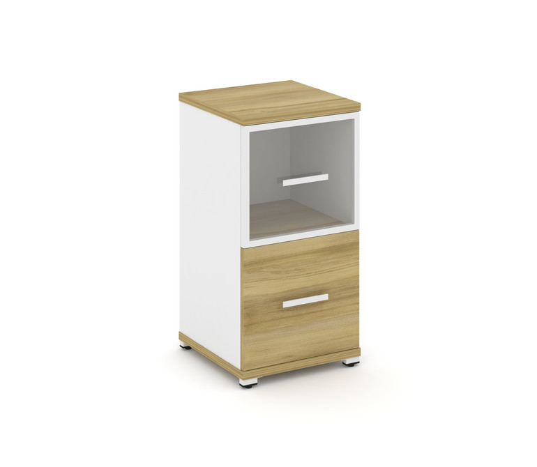 Concept Шкаф 1 узкая секция, 2 ниши CN.STU-212 RPW W Дуб Винченцо/Белый Бриллиант/Металл Белый/Прозр