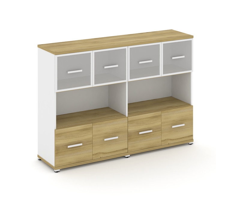 Concept Шкаф 2 широкие секции, 3 ниши CN.STS-325 RMW W Дуб Винченцо/Белый Бриллиант/Металл Белый/Сат