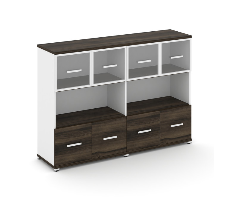 Concept Шкаф 2 широкие секции, 3 ниши CN.STS-325 RPW W Дуб Мали/Белый Бриллиант/Металл Белый/Прозрач