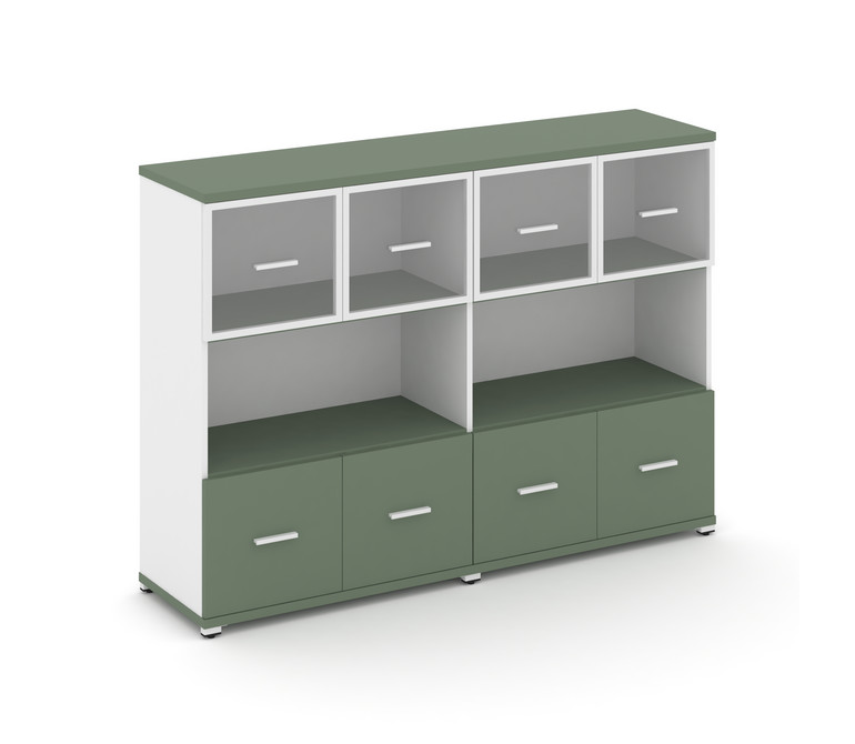 Concept Шкаф 2 широкие секции, 3 ниши CN.STS-325 RPW W Кобо/Белый Бриллиант/Металл Белый/Прозрачный
