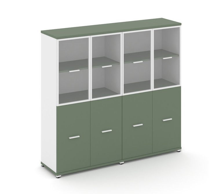 Concept Шкаф 2 широкие секции, 4 ниши CN.STS-422 RPW W Кобо/Белый Бриллиант/Металл Белый/Прозрачный