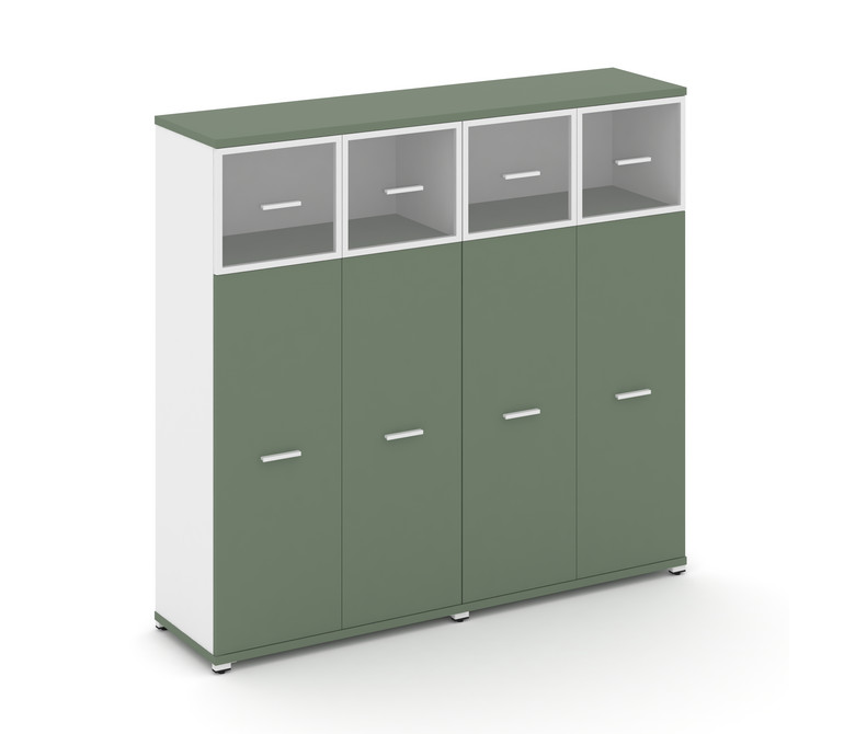 Concept Шкаф 2 широкие секции, 4 ниши CN.STS-424 RPW W Кобо/Белый Бриллиант/Металл Белый/Прозрачный