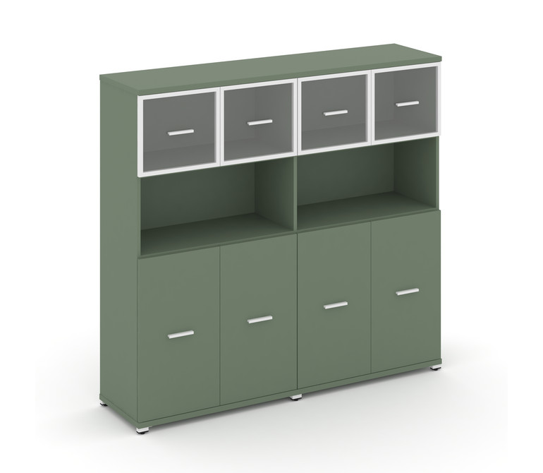 Concept Шкаф 2 широкие секции, 4 ниши CN.STS-425 RPW W Кобо/Металл Белый/Прозрачный 1668*420*1554