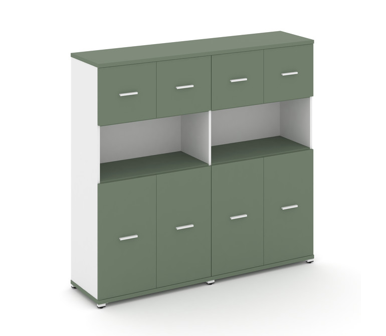 Concept Шкаф 2 широкие секции, 4 ниши CN.STS-425 W Кобо/Белый Бриллиант/Металл Белый 1668*420*1554