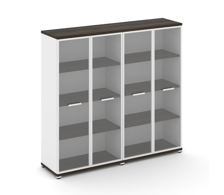 Concept Шкаф 2 широкие секции, 4 ниши CN.STS-426 RPW W Дуб Мали/Белый Бриллиант/Металл Белый/Прозрач