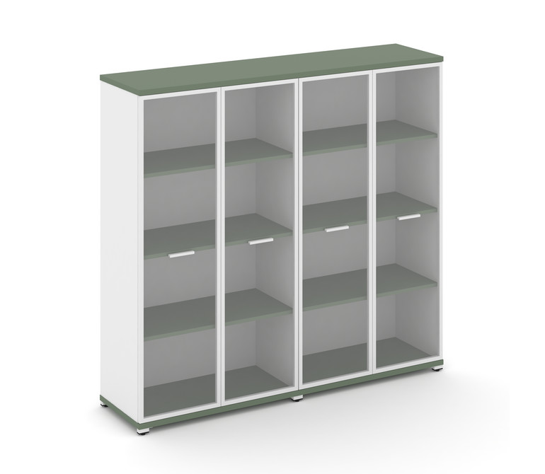 Concept Шкаф 2 широкие секции, 4 ниши CN.STS-426 RPW W Кобо/Белый Бриллиант/Металл Белый/Прозрачный