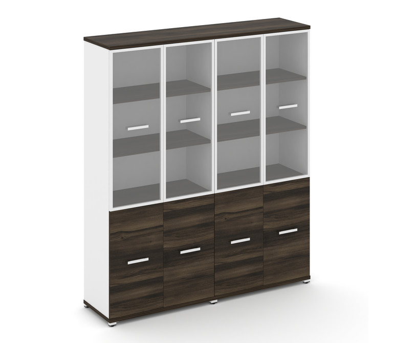 Concept Шкаф 2 широкие секции, 5 ниш CN.STS-522 RPW W Дуб Мали/Белый Бриллиант/Металл Белый/Прозрачн