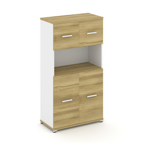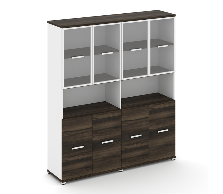 Concept Шкаф 2 широкие секции, 5 ниш CN.STS-523 RPW W Дуб Мали/Белый Бриллиант/Металл Белый/Прозрачн
