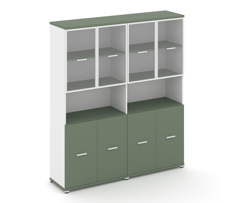 Concept Шкаф 2 широкие секции, 5 ниш CN.STS-523 RPW W Кобо/Белый Бриллиант/Металл Белый/Прозрачный 1