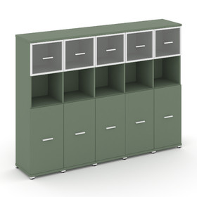 Concept Шкаф 2 широкие секции, 5 ниш CN.STS-527 RPW W Дуб Мали/Белый Бриллиант/Металл Белый/Прозрачн