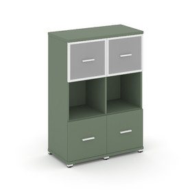 Concept Шкаф 2 широкие секции, 5 ниш CN.STS-528 RPW W Дуб Винченцо/Белый Бриллиант/Металл Белый/Проз