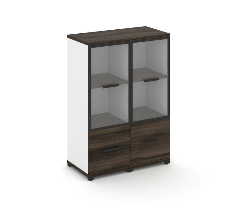 Concept Шкаф 2 узкие секции, 3 ниши CN.STU-322 RPB B Дуб Мали/Белый Бриллиант/Металл Черный/Прозрачн