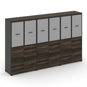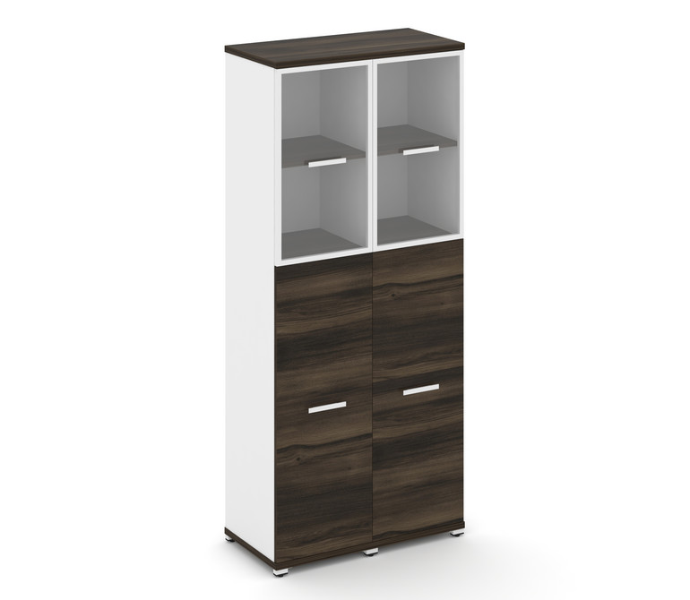 Concept Шкаф 2 узкие секции, 5 ниш CN.STU-525 RPW W Дуб Мали/Белый Бриллиант/Металл Белый/Прозрачный