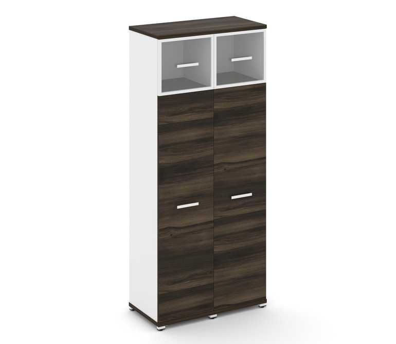 Concept Шкаф 2 узкие секции, 5 ниш CN.STU-527 RPW W Дуб Мали/Белый Бриллиант/Металл Белый/Прозрачный