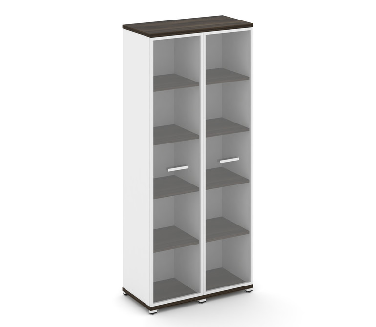Concept Шкаф 2 узкие секции, 5 ниш CN.STU-528 RPW W Дуб Мали/Белый Бриллиант/Металл Белый/Прозрачный