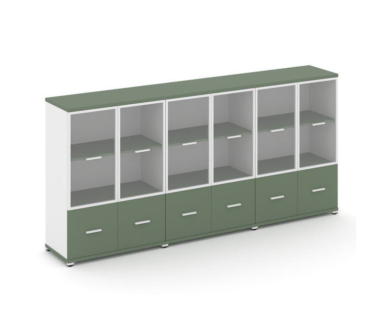 Concept Шкаф 3 широкие секции, 3 ниши CN.STS-332 RPW W Кобо/Белый Бриллиант/Металл Белый/Прозрачный