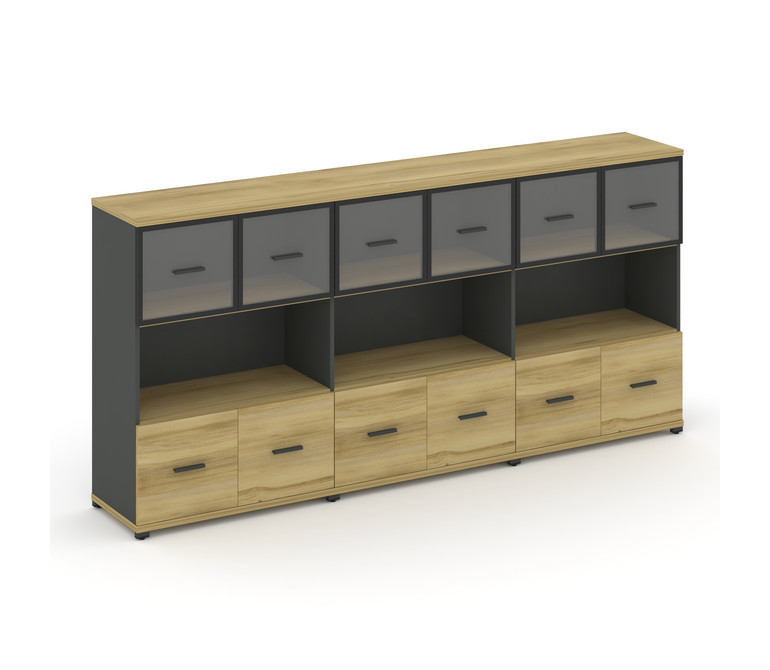 Concept Шкаф 3 широкие секции, 3 ниши CN.STS-335 RPB A Дуб Винченцо/Антрацит/Металл Антрацит/Прозрач